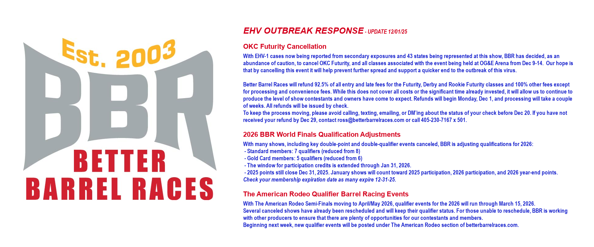 Each year, Better Barrel Races sanctions over 2,200 divisional, futurity and rodeo competitions across the nation! In addition to the money and prizes provided by each of these independent producers, BBR Members can earn credit towards qualificaiton for the BBR World Finals and earn points for the BBR Regional Standings. By looking for the BBR Stamp of Approval, barrel racers can rest assured they are participating in a Better Barrel Race.